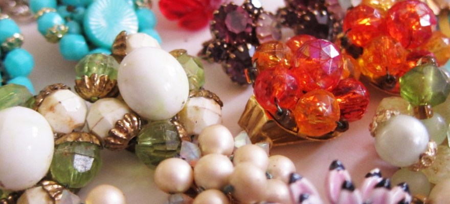 I’m always in search for old costume jewelry when I’m out looking for things to sell.  It’s easy to find, store, photograph and ship.  Also (even though I don’t wear jewelry much), it’s all pretty cool and fun to look through.  While I’m rather nearsighted I’ve found that I have better luck making out the tiny brands stamped on the pieces than most.  I’ve been selling jewelry for a while and just from buying a researching small pieces, I’ve learned a lot more about it than I ever thought I’d know.